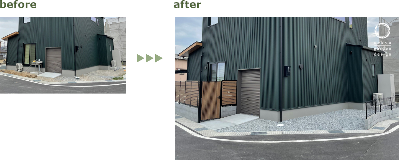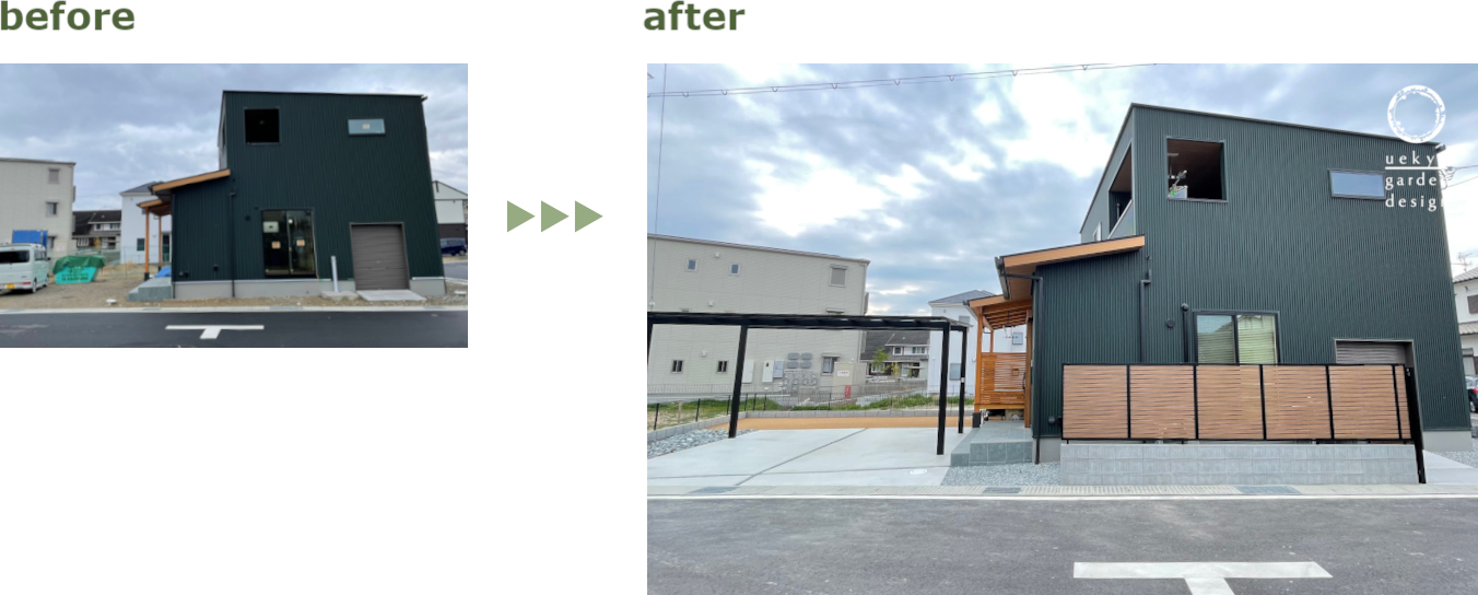 道路際の塀とカーポート F様邸/小野市 施工例 2025年10月8日 小野市F様邸BA1小野市F様邸BA2 カーポート、塀周辺工事を行いました。 ドア付きの目隠しを兼ねた塀。道との境界がわかりやすく安全も守られます。 カーポートは地面を全面コンクリートにするのではなく人工芝を入れることによりやわらかい雰囲気に。
