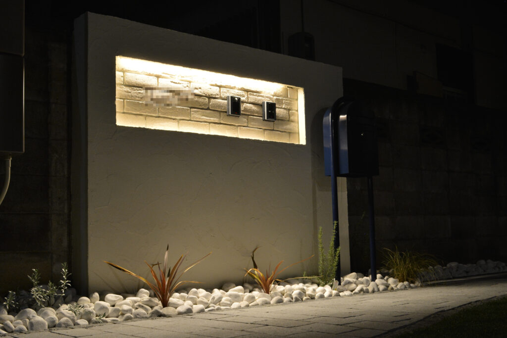 オシャレな門袖、夜は間接照明でさらにオシャレに T様邸/小野市