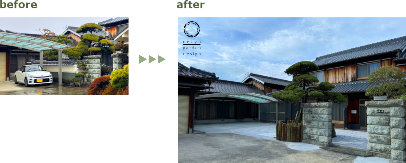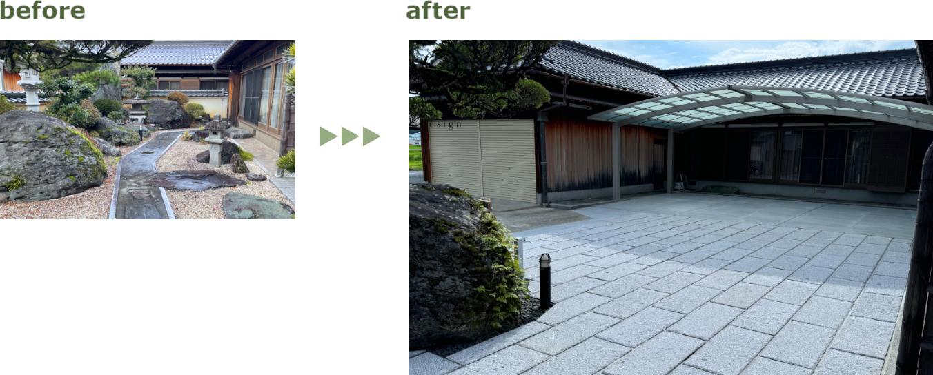 塀ごとお庭を半分解体し、カーポートを移設いたしました。 |