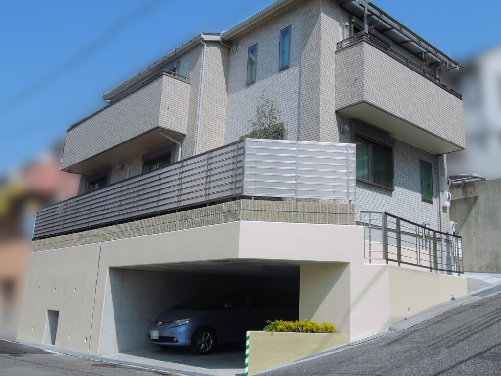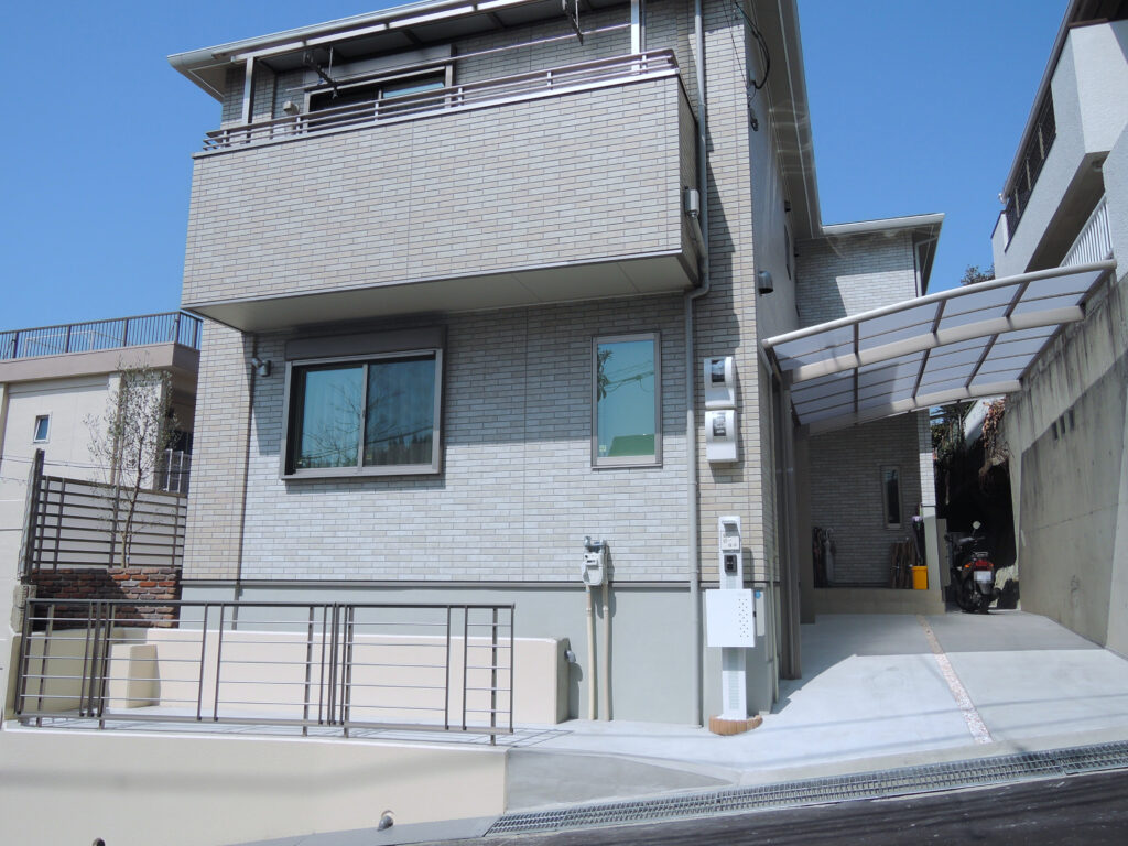 玄関前の通りはカーポートへ。