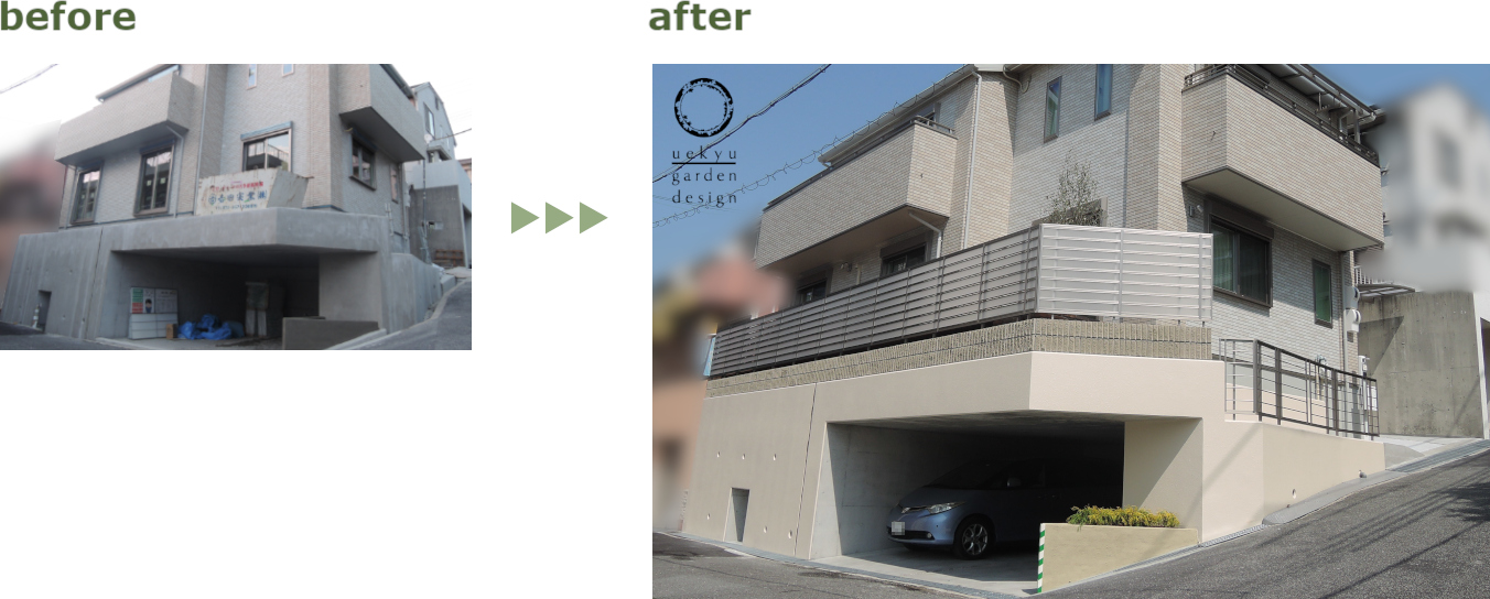 玄関前の通りはカーポートへ。 |