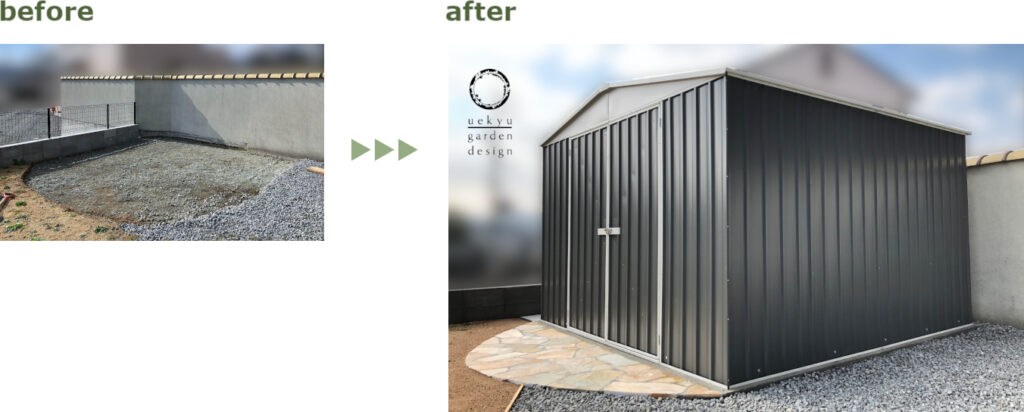 ユーロ物置®フロントエントリーの設置、倉庫周りの施工をいたしました。
